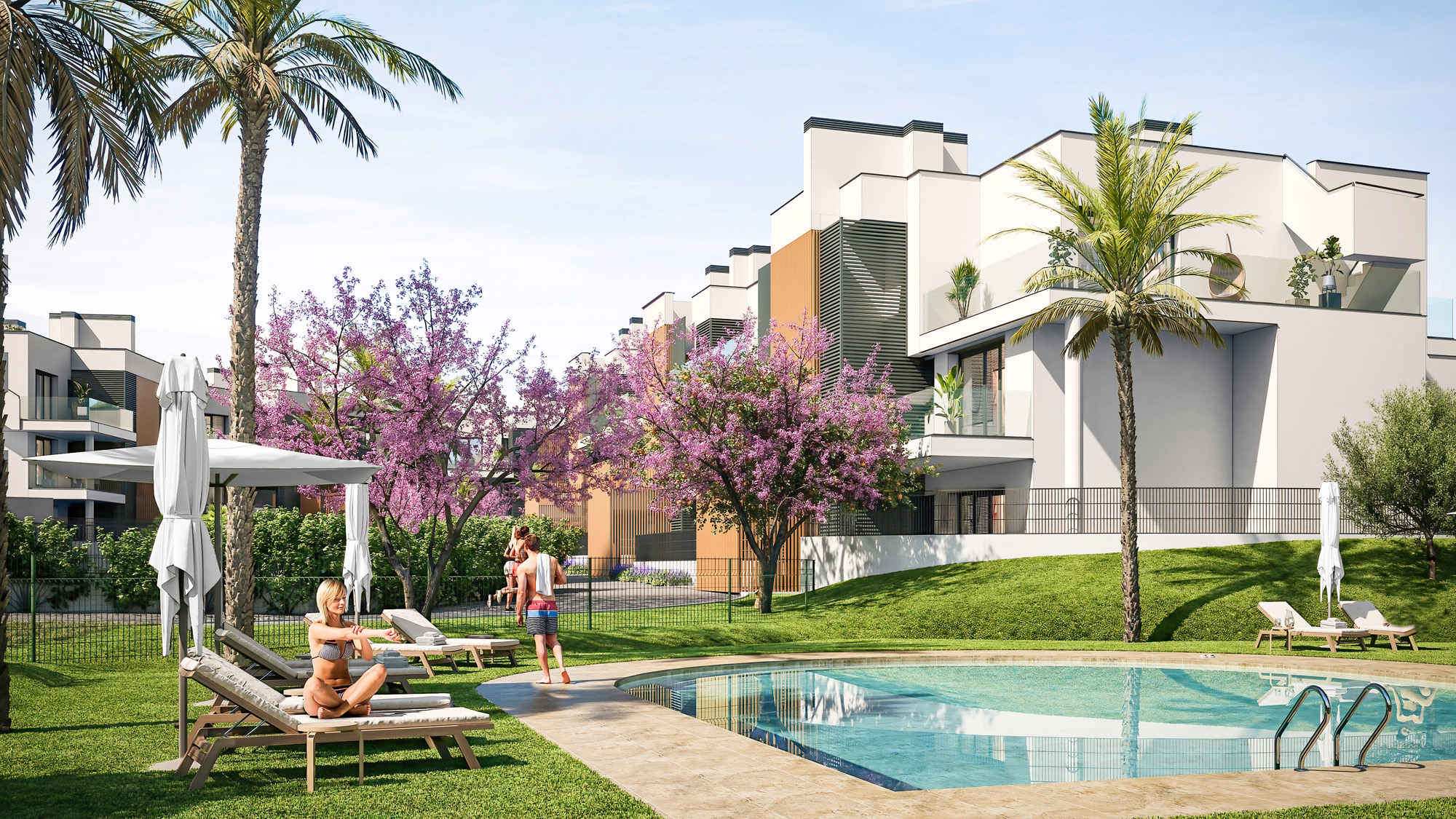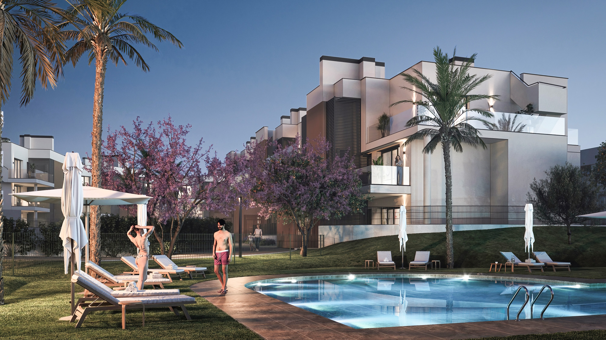 • Proyecto de visualización 3D para un complejo residencial situado frente al mar. Renders exteriores e interiores desarrollados para la presentación del proyecto y su comercialización.